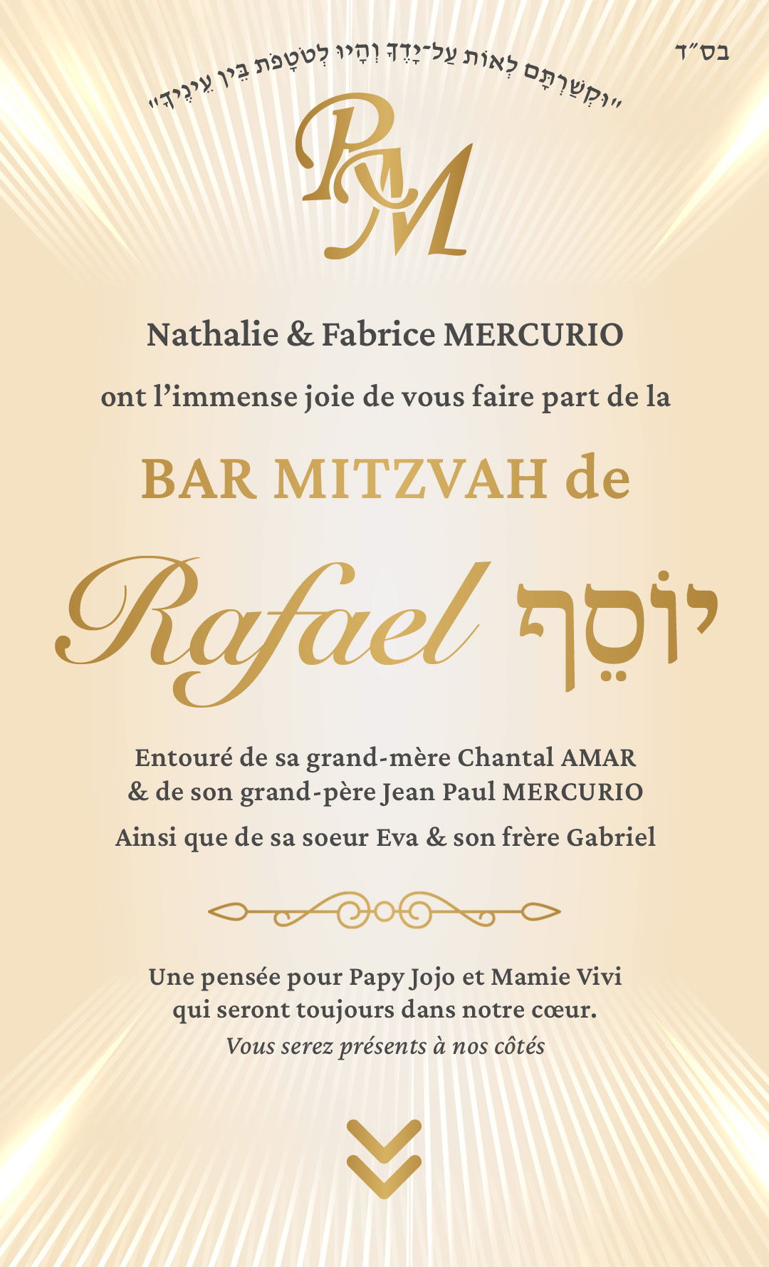 Nous serons heureux de partagerce moment avec vousMercredi 30 avril 2025à 8h30à Yemin Moshe Jerusalem, IsraëlL’office sera suivi d’un brunch